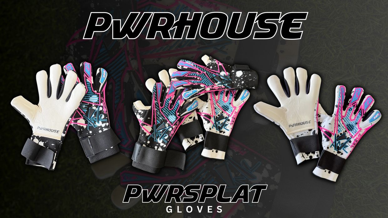 PWRHOUSE GK PWRSPLAT Gloves combine cutting-edge design with premium materials to give goalkeepers maximum performance and protection. Featuring an Ergo Cut for a snug, natural fit, 4mm German latex for unmatched grip, and premium knitting for comfort and breathability, these gloves deliver precision and control on every save. The rubber-injected backhand adds explosive punching power and durability. Available in classic Black and White, these gloves are made for the saves that matter most.